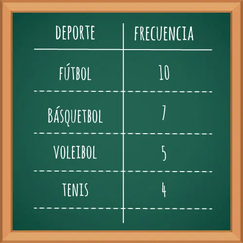 Se ha hecho una encuesta entre los alumnos de una clase de primaria, preguntándoles cuál es su deporte favorito. Estos son los datos que hemos obtenido: